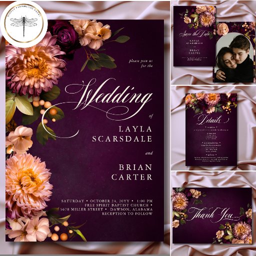 Elegant Burgundy Moody Floral Script WeddingCriado por Kathe Santillo