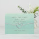 Simples, moderno, elegante, tipografia, casamento verde de menta de casando salvo o convite de data, com a escrita moderna e corda falsa de prata.