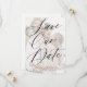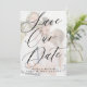 Casamento moderno romântico de chic salve a modelo com sua foto personalizada em uma camada transparente branca de moda com caligrafia colorida em preto. ++++++++++ Fácil de personalizar com seus detalhes e imagens em ambos os lados! +++++++++ Adequado para qualquer tema de casamento elegante de estação. ++++++++ Observe que a cor de fundo no verso é alterável. Você pode modificá-lo após selecionar a opção PERSONALIZAR. Se precisar de ajuda, você pode usar o Serviço de Design ao vivo gratuitamente.