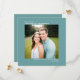 Este simples casamento Salve o cartão de data apresenta um elegante design quadrado com um fundo teal e texto colocado simetricamente que é justificado no topo e à direita, justificado no fundo. Carregue sua foto e avise seus convidados sobre sua próxima data de casamento.