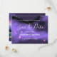 Verdadeiramente cósmico com uma fusão de gás geodo dourado e céus noturnos estelares cheios em tons adoráveis de roxo, azul e lacrimejo. Com texto fácil de editar e caligrafia de rico, é uma escolha de excelente para casais que estão procurando por algo floral e diferente para se destacarem da multidão.