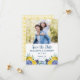 Este casamento de limão moderno, exceto o convite de data, é perfeito para um casamento de primavera ou verão. Este elegante design apresenta limões de aquarela brilhantes e bonitos com flores azuis elegantes e verde. Um padrão amarelo e branco decora o verso do convite. Projetado para você pelo Blackberry Boulevard.