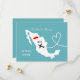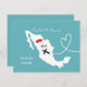 Um divertido aviso de data para casais que se casam no México, com um mapa de silhueta branca da Jamaica em azul-turquesa com corações de amor vermelhos doces e muito fácil de personalizar com seus nomes e mensagem