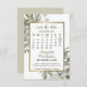 Estes cartões salve a data vão avisar seus amigos e família sobre seu próximo casamento. Eles apresentam uma design de ouro e verde-sábio rústico com um calendário para o mês do seu casamento e um coração à volta do seu dia especial. Há pinturas feitas à mão de aquarelas de folhas de eucalipto e galhos de pinheiro. O título é escrito em uma caligrafia antiga com espaço para os nomes do casal, data do casamento, local e site.