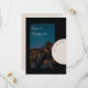 Um círculo simples com texto curvo sobrepõe os detalhes do casamento in a box.