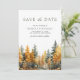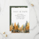 Amaze seus hóspedes com esse tema da floresta, salve a data com belos pinheiros e a tipografia moderna com código QR para o site de casamento. Basta adicionar os detalhes do seu evento neste modelo fácil de usar e enfeitar este cartão com as suas fotos favoritas para torná-lo um cartão de data única.
