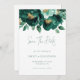 Emerald Green e Florals Dourados Casamento de Código QR. Florais verdes e folhagem lindos e um roteiro elegante para Salvar a Data. O resto do texto que você pode personalizar facilmente com seus detalhes. Adicione seu código QR ao seu site de casamento na parte traseira ou exclua este e o texto na parte traseira, se não for necessário. Disponível digitalmente ou impresso.