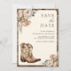 Surpreenda seus hóspedes com este tema ocidental. Salve a data com belas botas de cowboy e tipografia moderna com o QR Code para o site de casamento. Basta adicionar os detalhes do seu evento neste modelo fácil de usar e enfeitar este cartão com a sua foto favorita para torná-lo um cartão de data única.