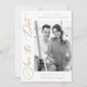 Anuncie seu próximo casamento com este sofisticado e moderno cartão de data, projetado para casais que apreciam elegância e simplicidade. "Salvar a data" é exibido verticalmente no lado esquerdo em uma caligrafia luxuosa em ouro, definida em um fundo branco nítido para uma aparência de eterno. Sua foto de noivado vertical é mostrada à direita, criando um equilíbrio incrível entre texto e imagem. Personalize a design com seus nomes, data do casamento e local em letras em negrito de ouro para um toque coeso e refinado. A parte traseira da placa apresenta espaço para uma foto adicional, juntamente com o site do seu casamento e um código QR para fácil compartilhamento dos detalhes do evento. Perfeito para os casais que buscam um anúncio na moda e contemporâneo, esta salva a data define o tom para uma celebração inesquecível.