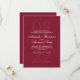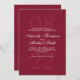 Elegante na moda com o nome da noiva e do noivo no estilo de letra branco do script elegante e detalhes no estilo de letra branco clássico do serif com data grande em vermelho claro como fundo em fundo vermelho burgundy.