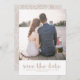 Casamento romântico de renda salve o cartão de data em elegante bege neutro e branco crocante. Simplesmente adicione suas informações e fotos favoritas para fazer deste belo design.
