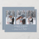 Foto Azul Moderno Colagem de Foto Monograma Casamento Salve a Data. Apresenta 3 fotos na frente e um monograma simples na parte de trás. Personalize facilmente substituindo cada informação. Carregue fotos verticais/retratos. Verifique a visualização antes de adicionar ao carrinho. (Exemplos de fotos de Mikhail Nilov)