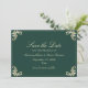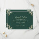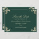 O elegante e esmeraldo, verde-ouro e barroco, salvo o cartão de data com um monograma regular no verso. Perfeito para casamentos clássicos e luxuosos, este design destaca detalhes do eterno e charme formal. Personalize com nomes, data e local para criar um anúncio de na moda que seus convidados irão adorar. Ideal para celebrações tradicionais, reais ou inspiradas em vintage. Convites, RSVP, menus, programas e muito mais disponíveis no suite de casamento de cheios.