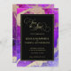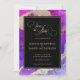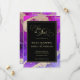 Luxuoso rosa e roxo Guarde o cartão Data com um sotaque de ouro/latão rico em espirais de cor líquida. Sentar no topo da arte é uma modelo fácil de editar; à qual podem ser adicionados os nomes da noiva e do noivo. Em seguida, substitua o texto do modelo pela data, hora e local do casamento. Um Casamento Dourado de Abstrato Púrpura , cor-de-rosa-preto, salva a data. Arte original de tinta a álcool abstrato da artista internacional Pauline Benjes.