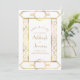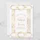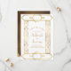 Este elegante casamento inspirado em vintage Salve o cartão de data com texto dourado num fundo branco, enquadrado por uma na moda vintage geométrica deco border na folha de ouro falsa. Substitua a imagem de exemplo no verso por sua foto vertical favorita.