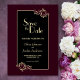 Um elegante cartão de casamento preto e dourado para informar seus amigos e entes queridos do seu próximo evento.