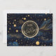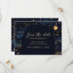 Anuncie seu casamento de uma forma elegante e memorável com este save the date de casamento celestial, apresentando um fundo azul-marinho profundo, detalhes celestiais dourados refinados e um design romântico inspirado nas estrelas. A parte traseira do cartão inclui um monograma coordenado, adicionando um toque final luxuoso e coeso.