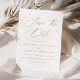 Anuncie seu grande dia com nosso casamento chic, salve os cartões de data. Apresentando "Salvar a Data" em elegante caligrafia dourada em um fundo branco nítido, esse design expele sofisticação e estilo. Os casais podem personalizar o cartão com seus nomes, data de casamento, local e site de casamento, todos exibidos em letras negrito dourado para um olhar coeso e polido. Simples, moderno e eterno, estas cartas são a maneira perfeita de compartilhar suas notícias interessantes enquanto define o tom para uma celebração clássica e memorável.