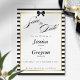 Listras brancas e pretas elegantes e um roteiro embrulhado em um quadro dourado. Faça uma impressão duradoura para o seu dia de casamento com este design eterno. O gracioso arco preto adiciona um toque refinado, enquanto a tipografia cuidadosamente selecionada combina o estilo clássico e moderno. Este design versátil coordena-se lindamente através de sua suíte de casamento completa, desde salvar a data, convites, obrigado você e colocar cartões. Para obter suporte personalizado e personalizado para qualquer elemento design, entre em contato com remidevandesigns@gmail.com. RemideVan©