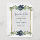 O ouro luxuoso aparado de flores azuis empoeiradas com fundo branco "Salve a Data" O verso de "Salve a Data" está em azul/girassol empoeirado. Elegância no seu melhor. Que adorável. Eu gostei de criar essa design para você. Lembrete: a Zazzle garante 100% de atendimento e satisfação do cliente.