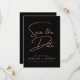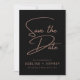 Um design elegante minimalista é apresentado neste documento Salvar a placa de data. A placa preta tem uma opção Save The Date (Salvar a data) em uma tipografia de letra rosa dourada. Personalize com seus nomes, data do casamento e local em uma simples fonte de ouro rosa.