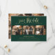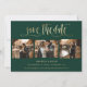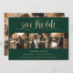 Elegante emerald green e cartões salve a data de 4 fotos douradas com um moderno título de roteiro de folha de ouro falso. Personalize facilmente este casamento verde esmeralda salve a data com suas imagens e detalhes de casamento, incluindo um site de casamento.