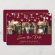 Elegante personalizou cartões salve a data de fotos de burgundy e ouro com letra moderna. Personalize facilmente este burgundy, salve a data com suas imagens e detalhes de casamento, incluindo um site de casamento.