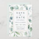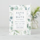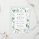 Este casamento salva a data do convite... retrata a cor d'água do eucalipto e as folhas verdes botânicas com uma estrutura retangular de ouro.