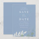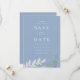 Casamento Elegância em Azul Poeira com Folhas Verdes Save the Date