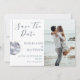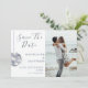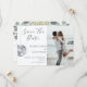Marque a cena de uma celebração temática da Disco 1970. Dusty blue é a cor de fundo para este design de Casamento elegante personalizado de bola de Disco floral. As manchas prateadas estão também no design. Altere facilmente as informações para o seu próprio design personalizado. Altere a imagem do espaço reservado com a sua própria fotografia. Elegante design de casamento formal.