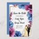 Esta elegante floral de aquarela salva o convite de data é perfeito para um casamento moderno. A design romântica apresenta uma elegante estrutura floral de aquarela com uma ilustração noiva e noiva e caligrafia preta sobre fundo branco.