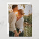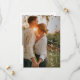 Casamento elegante salve o cartão de data apresentando um layout simples e mínimo com "salve a data" em uma caligrafia moderna manuscrita e seus nomes e data em uma fonte serif clássica sobre sua foto favorita. O verso tem uma segunda imagem junto com sua mensagem personalizada. O tema de cores é preto e branco e pode ser alterado na ferramenta de edição de design.