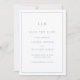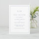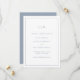 Simples guarde o cartão de data com um design moderno, mas elegante, com seu monograma de duas letras no topo e seus detalhes de casamento cercados por uma borda fina. Todo texto está em azul empoeirado sobre um fundo branco e pode ser alterado para qualquer cor desejada na ferramenta de edição de design. Um design chic e na moda que é excelente para um casal minimalista.