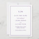 Simples roxo real salve o cartão de data com um design moderno, mas elegante, com seu monograma de duas letras no topo e seus detalhes de casamento cercados por uma borda fina. As fontes e as cores de fundo podem ser alteradas para qualquer cor desejada. Um design chic e na moda que é excelente para um casal minimalista.