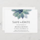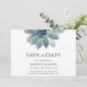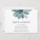 Casamento de Greenery Botânico Salve o cartão de anúncio de Data com um elegante design suculento. Com uma inscrição personalizável, você pode adicionar seus nomes e informações de casamento. Excelente para planejar seu dia especial com um tema do deserto.