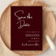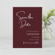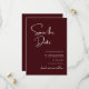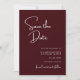 Elegante e Moderno "Save the Date" de Casamento Burgundy é criado para anunciar sua celebração com estilo, calor e confiança. A rica cor burgundy cria uma primeira impressão romântica e sofisticada, enquanto o layout limpo e moderno mantém o design atemporal e fácil de ler. A tipografia cuidadosamente organizada destaca seus nomes e data de casamento, garantindo que seus convidados se lembrem do momento mais importante. Este cartão "save the date" combina perfeitamente com temas de casamento clássicos, formais ou contemporâneos, tornando-o uma escolha versátil para qualquer estação ou local. Perfeito para casais que desejam que sua papelaria de casamento seja refinada, mas acessível, este design define o tom para uma celebração elegante e dá aos seus convidados um belo lembrete de seu dia especial que se aproxima.