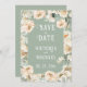 Cores neutras de aquarela lindas com uma moldura floral em um fundo suave verde salvia foram usadas para criar este adorável cartão de Save the Date de casamento elegante. Um cartão de resposta de casamento perfeito para qualquer casamento de estação. 100% de satisfação do cliente com a Zazzle todos os dias.