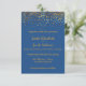 Este é um cartão de casamento de convite personalizável. Um convite de casamento que apresenta um fundo azul com ouro faux foil confetti elegant inspirado design com texto branco. Esta é uma folha de ouro falso é parte de uma suíte de casamento.