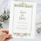 Reserve A Data Casamento Elegante Floral Borboleta Aquarela Verde