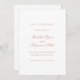 Elegante salve o cartão de data com o texto tradicional. Seus nomes estão na caligrafia rosa gold e seus detalhes estão em uma fonte serif, sobre um fundo branco. Este design clássico é perfeito para um casamento formal de gravata negra.