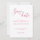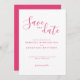 Este convite mínimo e moderno Salve a data apresenta uma fonte elegante e bela escrita complementada com texto moderno em rosa quente na frente do convite. Esta peça está pronta para você personalizar com os detalhes do seu dia especial. Parte de uma coleção em crescimento constante, navegue na Elegant Pink Floral Watercolor Wedding Collection para obter itens correspondentes.