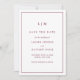 Simples burgundy salve o cartão de data com um design moderno, mas elegante, com suas duas letras de monograma no topo e seus detalhes de casamento cercados por uma fina borda. As fontes e as cores de fundo podem ser alteradas para qualquer cor desejada. Um design chic e na moda que é excelente para um casal minimalista.