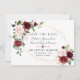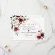 Cartão elegante com flores em tons de borgonha e folhas verdes em aquarela, moldura dourada falsa, divisor floral em fundo branco. No verso, os mesmos buquês de flores. Utilize a ferramenta Personalizar para adicionar suas informações, alterar fontes e cores. Para itens correspondentes, visite minha Coleção Moldura Dourada Flores Aquarela.