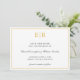 Elegante salve a data que apresenta seu monograma inicial em ouro falso, dentro de uma borda, sobre um fundo branco. Este design de classe é excelente para um casamento formal.
