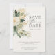Um casamento elegante salve a data com um molde fotográfico, com uma pintura aquosa de rosa e eucalipto verde, com sotaque dourado (é um efeito digital, não uma folha real).