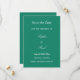 Elegante Casamento Verde Emerald Salve a Data, personalize os nomes do casal, a data do casamento e a localização do casamento, usando a modelo de personalização online antes de fazer o pedido. Se desejar, você poderá personalizar a opção Salvar a Data para um tipo de evento de alternativo em vez de um casamento, alterando o texto adequadamente antes de fazer o pedido.
