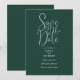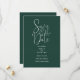 Este convite de casamento em verde esmeralda elegante e script para salvar a data pode ser personalizado com todas as informações especiais do seu casamento. Criado por Thisisnotme©