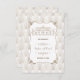Design de luxo no estilo Art Déco inspirado no Grande Gatsby. Apresenta forma Art Déco com ornamentos de Fleur-de-lis em dourado falso, divisores e faixa em dourado falso, fontes vintage, em um fundo Art Déco branco dourado. Use a ferramenta de personalização para adicionar suas informações. Para itens correspondentes, visite minha Coleção Glam Art Déco dos anos 20.