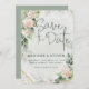 Rosas Dourados Elegantes, cor-de-rosa, Eucalyptus Foliage Wedding Save the Date Card. Envie este belo cartão SAVE A DATA para sua família e amigos. Personalize-o alterando os nomes dos casais, a data, o local e outros detalhes no cartão. Você pode alterar a cor de fundo da parte traseira da placa. Para mais personalização, entre em contato comigo em kbasandra@gmail.com.