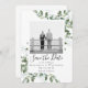 Diga aos seus amigos e familiares que você marcou uma data para o seu casamento com esta linda aquarela eucalipto Salve o cartão de Data. A fotografia dos modelos é para fins ilustrativos e pode ser mudada para um dos seus.